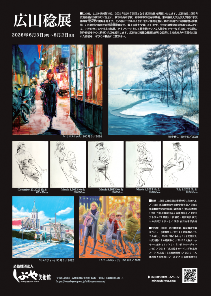 広田稔氏は、1959 年広島県福山市新市町に生まれ、東京藝術大学及び大学院にて、洋画家・彼末宏の指導のもと、絵画の研鑽を積みました。