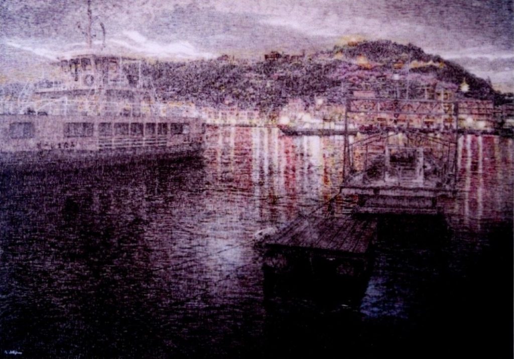 尾道市出身の画家・外山昇さんのペン画作品展。
