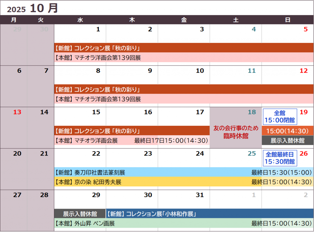 10/17(金) ・・・本館15:00 閉館 (入場は14:30まで)