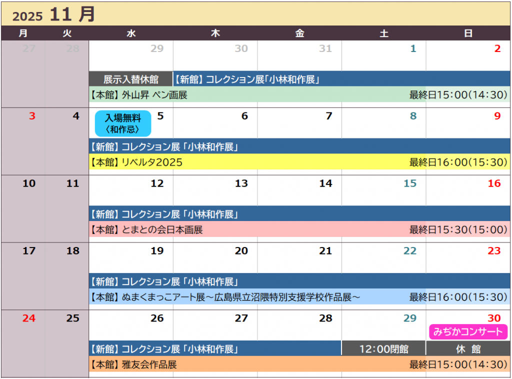 【本館】11/30(日) ・・・15:00 閉館 (入場は14:30まで)